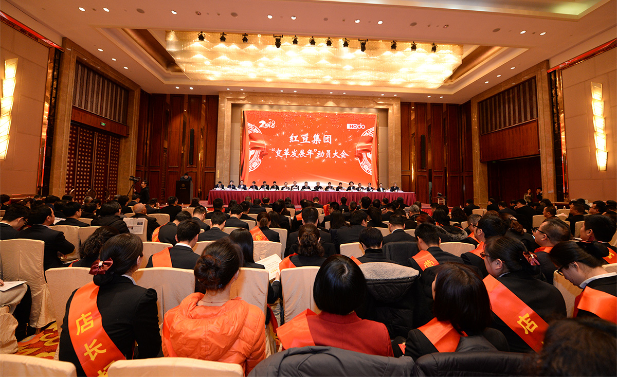 2月22日,紅豆集團召開2018變革發(fā)展年動員大會,紅豆集團創(chuàng)始人、集團股東會會長周耀庭、集團董事局主席兼CEO周海江等集團領(lǐng)導(dǎo),