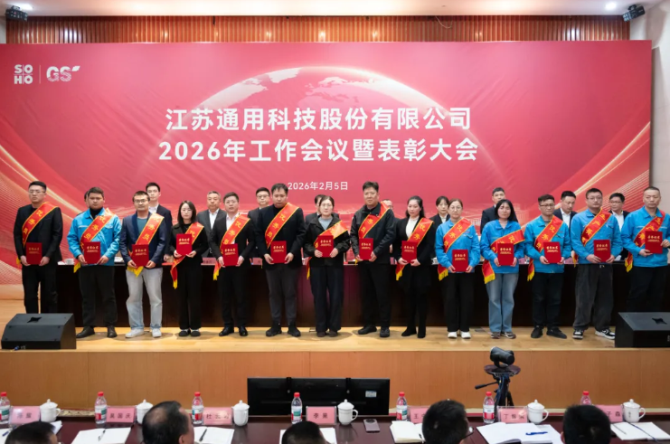 2月5日,通用股份召開2026年工作會議暨表彰大會,會議以習近平新時代中國特色社會主義思想為指導,深入學習貫徹黨的二十屆四中全會、中央經濟工作會議精神,全面總結公司2025年工作,分析發展形勢,系統部署2026年重點任務。蘇豪控股集團黨委委員、副總裁晉永甫出席會議并講話。公司黨委書記、董事長賈國榮,黨委副書記、總經理顧萃等領導班子成員及全體員工現場參會。泰國、柬埔寨海外基地全體員工線上同步參會。